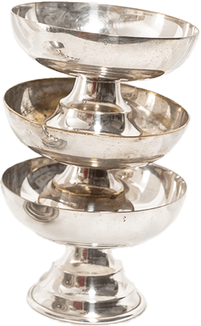 We offer a wide selection of vintage silver tableware, from ornate dishes to delicate dessert cups. These objects have collected many stories, and are ready to collect yet another - with your project. From events to photo shoots, we deliver within Spain and beyond. Consult the full catalog and contact us at coucou@studiodominguette.com to start renting.